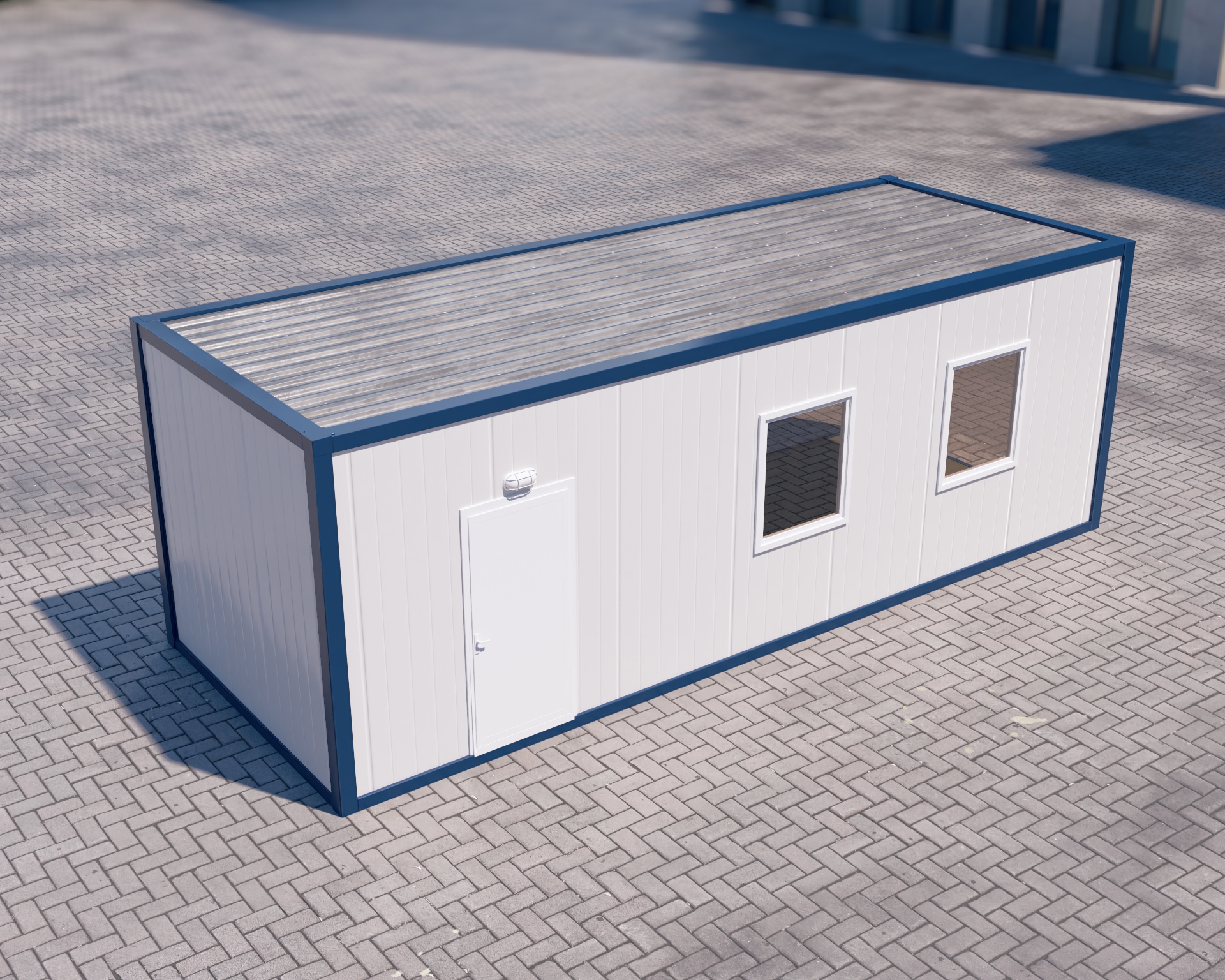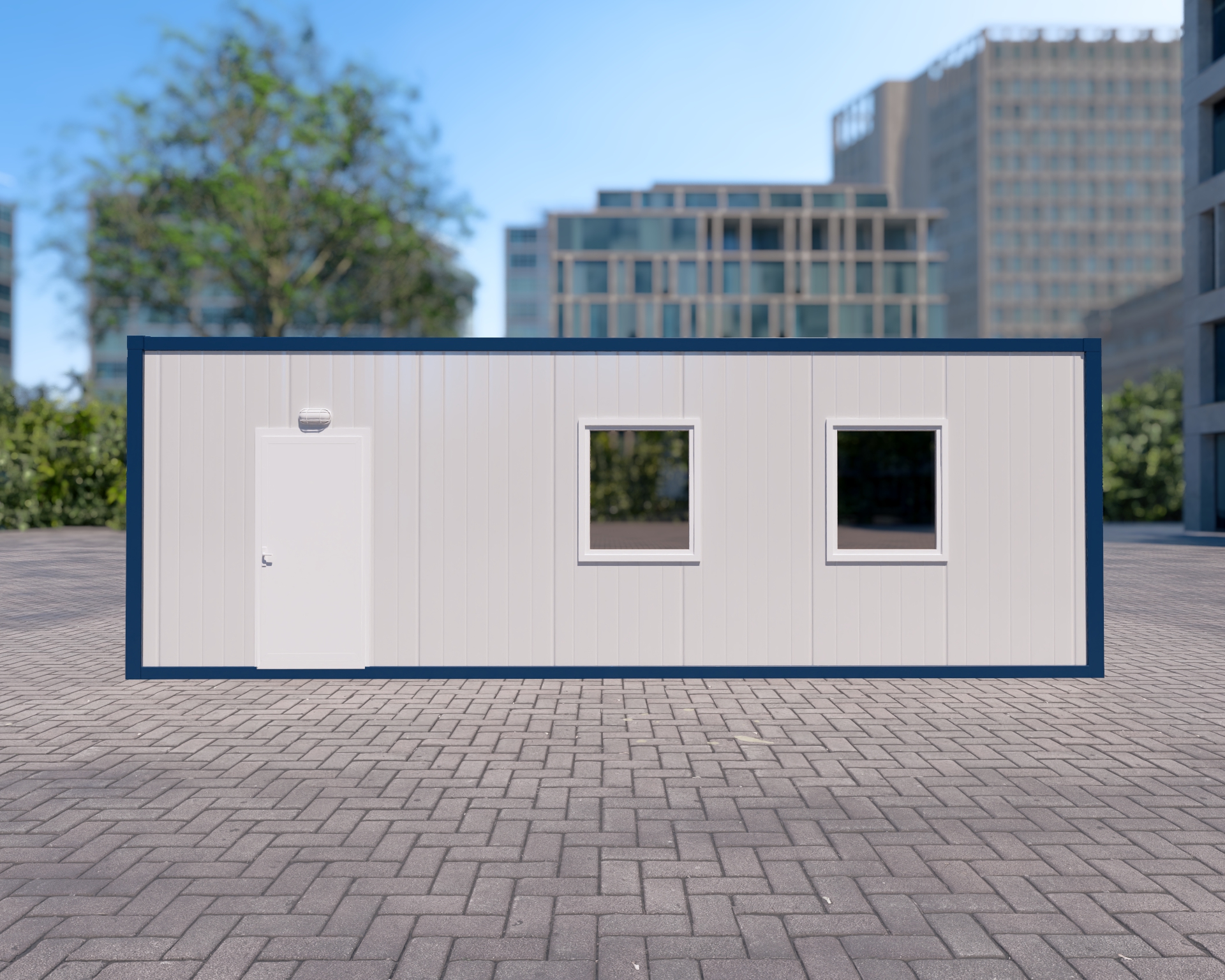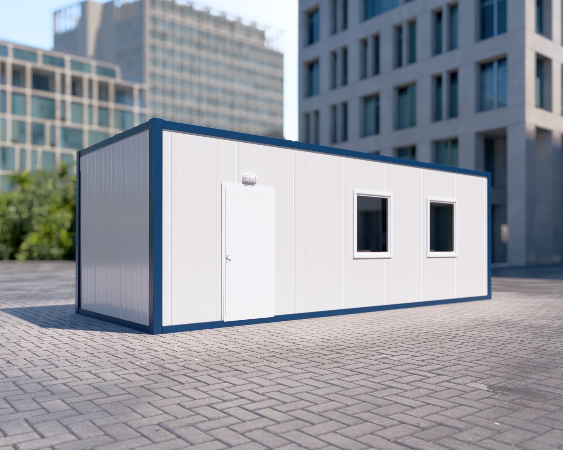 • Corporate and Aesthetic Design: The horizontal paneled exterior façade and symmetrical window structure seen in Visual 2 reflect your corporate identity in the best possible way on site.